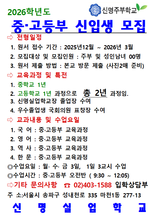 2026학년도 중·고등부 신입생 모집