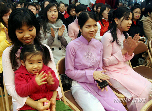 (서울=연합뉴스) 최재구 기자 = 14일 서울 송파구 마천청소년수련관에서 열린 신명주부학교 졸업식 및 결혼이민자 한글교실수료식에서 한 결혼이민자가 자녀와 함께 한글교실 수료를 기뻐하고 있다.